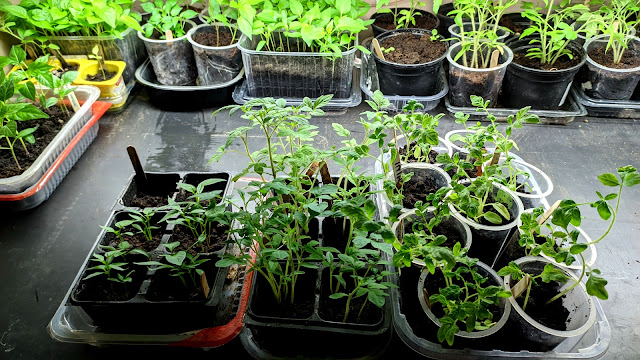The past couple of days there hasn’t been much work with the seedlings. The weather was too bad to do any work outside, so I didn’t do any transplanting, except for the mini tomatoes. I’ve transplanted them to individual little pots so that they could grow better and grow more roots. These tomatoes will be staying in the front yard, most likely in balcony containers. There are lots of them for now, but they tend to die off after the transplanting, so we’ll see how many I’ll have left in a couple of weeks.